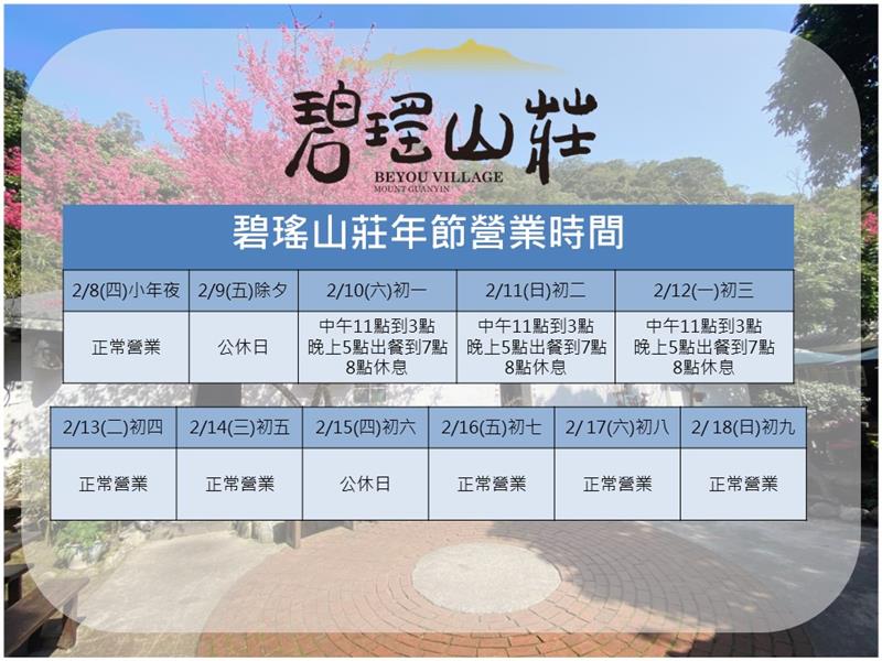 年節期間營業時間變動