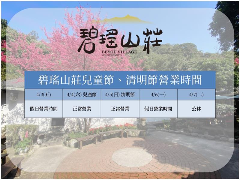 2026年兒童節、清明節連假營業時間